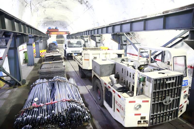 走进新巨龙公司主要运输大巷,平整的商混路面平坦宽阔,一辆辆胶轮车载着人员或物料疾驰而过。而在采区内部,单轨吊如“空中列车”般在顺槽中灵活穿梭,两者在标准换装站精准对接,物料转运无需二次落地,实现了“大巷到工作面”的无缝衔接。