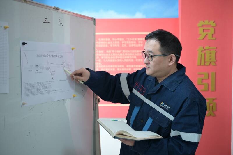 异地援建的这段时间不仅让他把东滩的成熟经验传了出去,更让他练就了“从0到1搭体系、贴近现场解难题”的硬本领。2024年3月,郭省调任综掘一区技术主管,岗位变了,他扎根现场的习惯没有变。上任后,他创新打造“技术+安全”双保障体系,提出要超前部署,全面推行“一工程一方案”。由他负责的12条巷道的掘进工作,从几十米的短巷到千余米的顺槽巷道,巷道掘进到哪里,他的身影就出现在哪里。