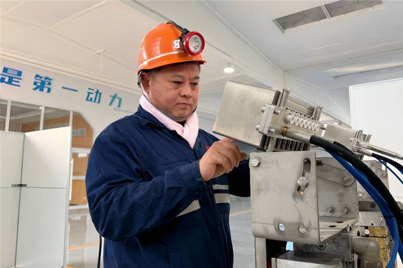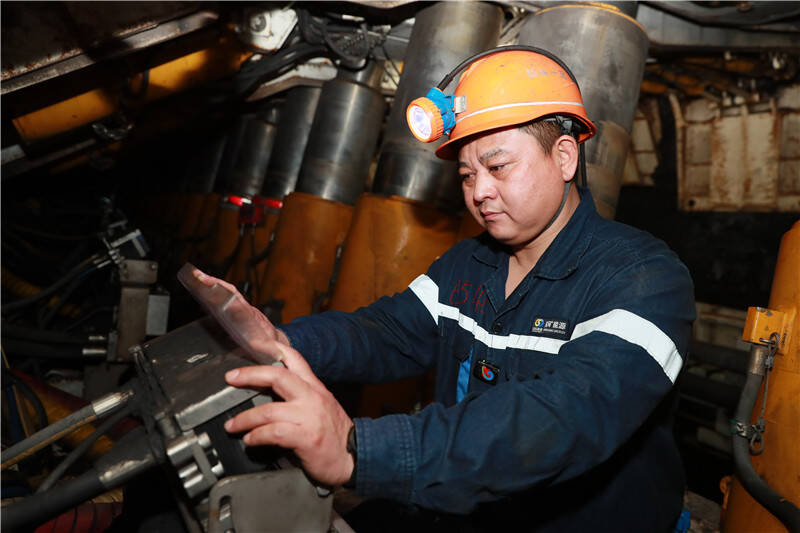 一次,在43下05工作面,一处液压支架的空间异常狭窄,推移胶管损坏,U型销拆不下来。狭小的空间只能伸进两只手,人必须趴着作业。赵顾超二话不说,趴下身子,一点一点地摸索着干。胳膊磨破了皮,鲜血渗出,他全然不顾。“当时就一个信念,必须换好它!换不好,支架无法推移,生产就得耽误。”就这样,他在狭小的空间里整整趴了三个小时,最终成功排除了故障。